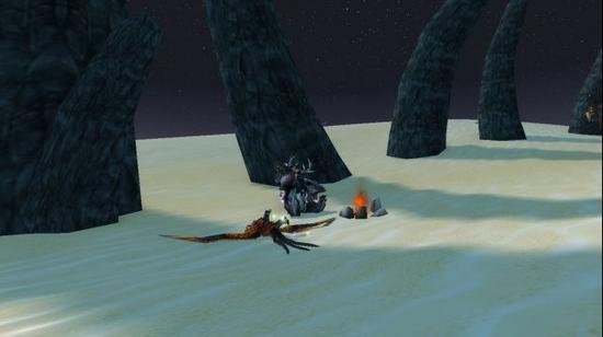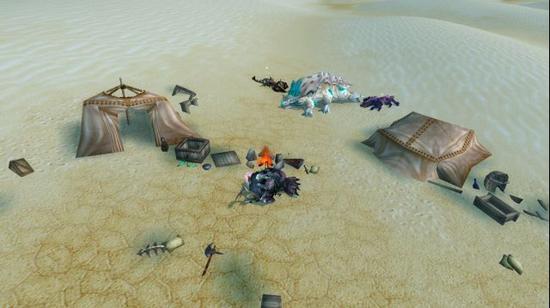 简直是天助我也,我竟然在东月废墟的北面发现了一处应该是其他冒险者留下的营地!帐篷,篝火应有尽有!经过检查,还哦都算是完好无损,几个破洞只要拿我带的霜纹布卷补补就好了。这就为我省下了大量的时间,可以慢慢的准备晚餐了。按照别人的说法,这附近应该生活着不少的大型野生动物,经过耐心的狩猎,我满载而归。一头晶鳞爬行者,一头疱爪土狼,还有一只在营地旁企图袭击我的毒蝎我也顺手解决掉了,就当开胃小菜吃咯。奈辛瓦里没来过这里真是他的一大遗憾呢。哼着小曲,处理了这些野兽,饱饱的吃了一顿,在篝火旁美美的休憩一会。睡前我检查了一下我的资源储备,水资源已经不多了,看来明天我得想个办法找点水了。
