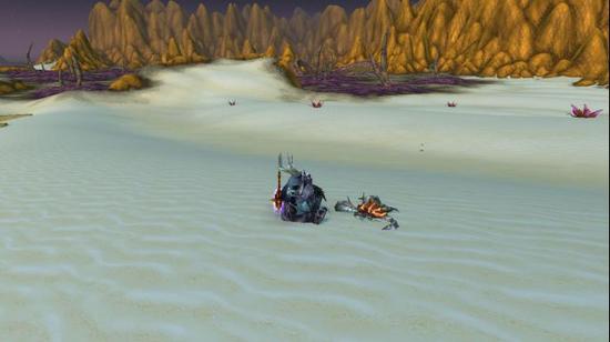 要说沙漠中的毒物多果然没错,这种毒蝎就是在沙漠十分常见的生物,与它们在杜隆塔尔的蝎子表亲相比,沙漠毒蝎体型更大,甲壳更坚硬,毒性也更强(我猜的,我可不想试)。这种东西用来做食物并不是很好的选择,因为处理起来十分困难,还要冒风险,还没有多少肉可吃,简单的讲,就是性价比太低。不管了,先走吧,说不定后面有闲心了能吃上一只尝鲜。