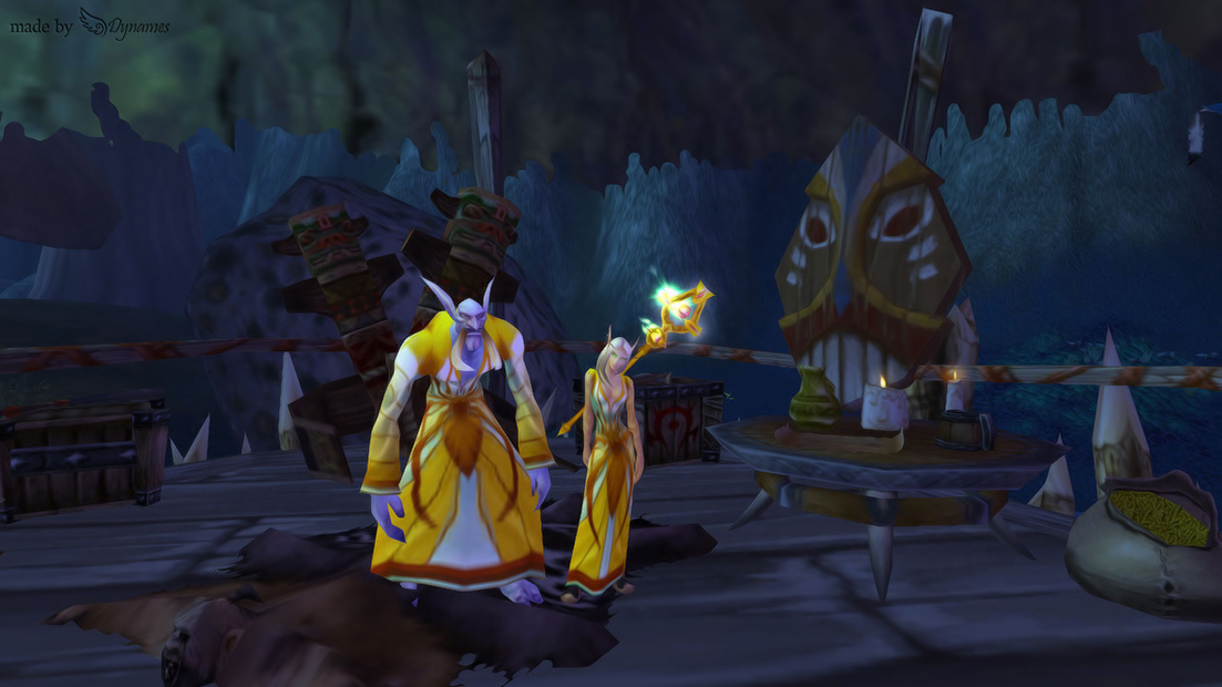 用尽一生人品在AH120G淘到了附魔师长袍!为了庆祝跟赞加沼泽的一个同样穿着附魔师的巨魔合影了。