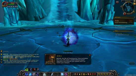 打完之后才能真正活动霜之哀伤重铸的武器,寒冰使者,上面还有阿尔萨斯他爹的名言。
