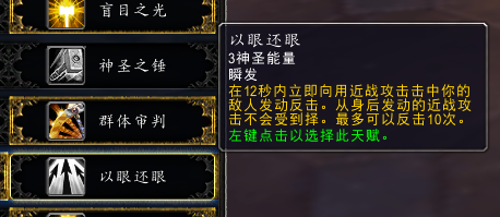 以眼还眼:反击近战攻击10次,持续12秒。会给你一个10层的buff,打一下少一层。