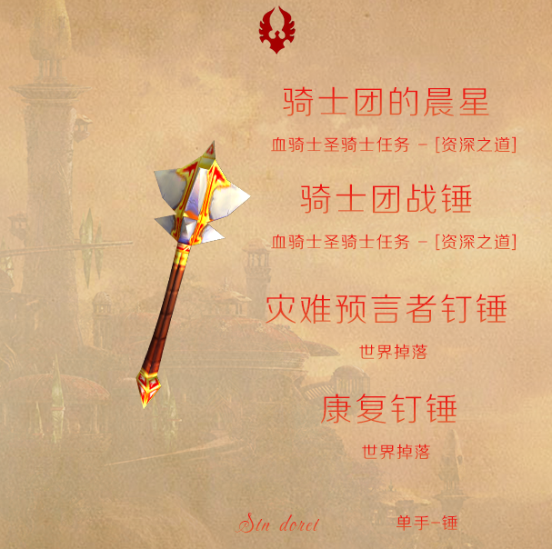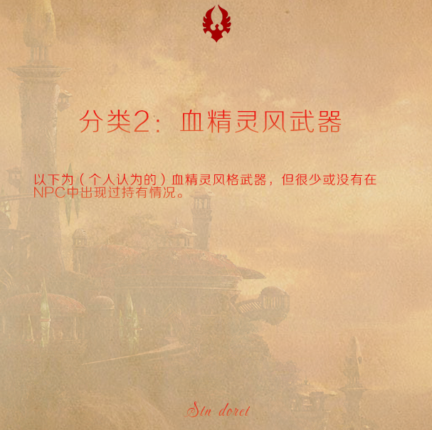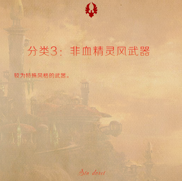最近在金色平原玩,心血来潮整理了一下血精灵风格的幻化武器,希望对大家有帮助~~