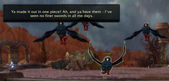“我有一个计划”他正色道“亡灵将军伊利扎凭借着手里一对受诅咒的利器,称为了南海上的一大祸患,她甚至还偷走了我最精良的舰船之一-大地之末号--并且把它停靠在阿苏纳的海岸边上,如果你可以帮我夺回舰船,那么她的那对武器就归你所有。如果你同意这个计划,就到红雾号上去跟我汇合。它就停靠在藏宝海湾,费用可真他娘的不便宜!”