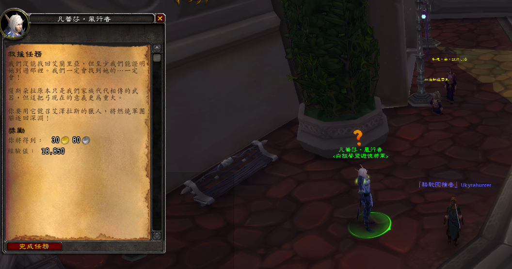 我们在达拉然银色誓盟这里打听到了奥蕾莉亚武器萨斯多拉的下落。