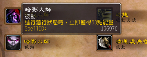 | 第六层(90级) | 预谋 被动 偷袭和暗影打击会额外产生1点连击点数 |