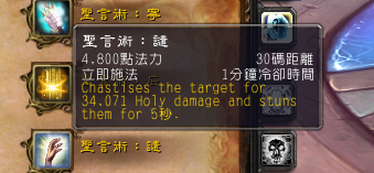 当你施放惩击或神圣之火时,圣言术:罚的冷却时间缩短6秒。