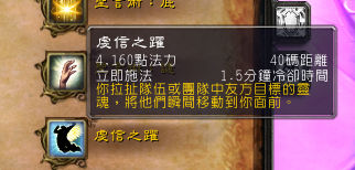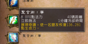 5%法力,40码范围,瞬发,1分钟冷却时间