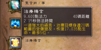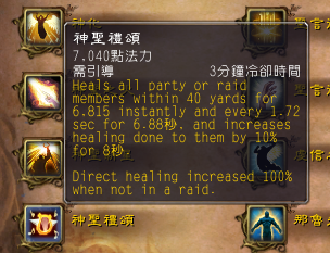 被动妙手回春与圣言术静互动,施放治疗术时缩短圣言术静冷却时间。
