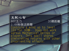 2.0%法力,40码范围,1.5秒施法时间,10秒冷却时间