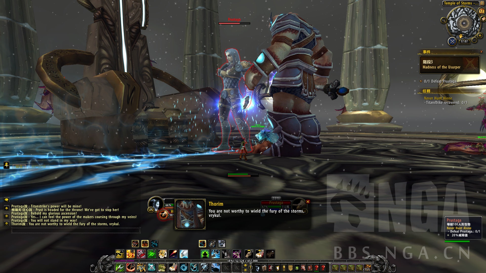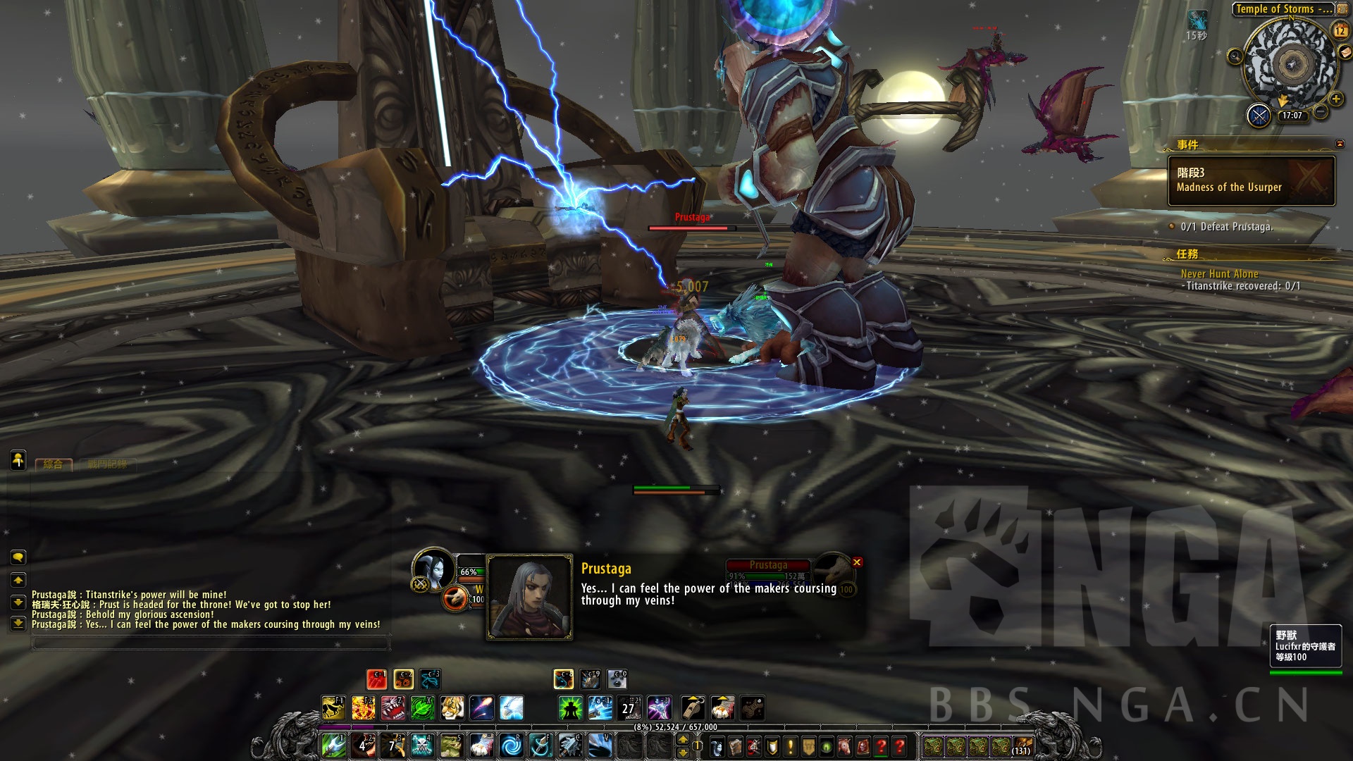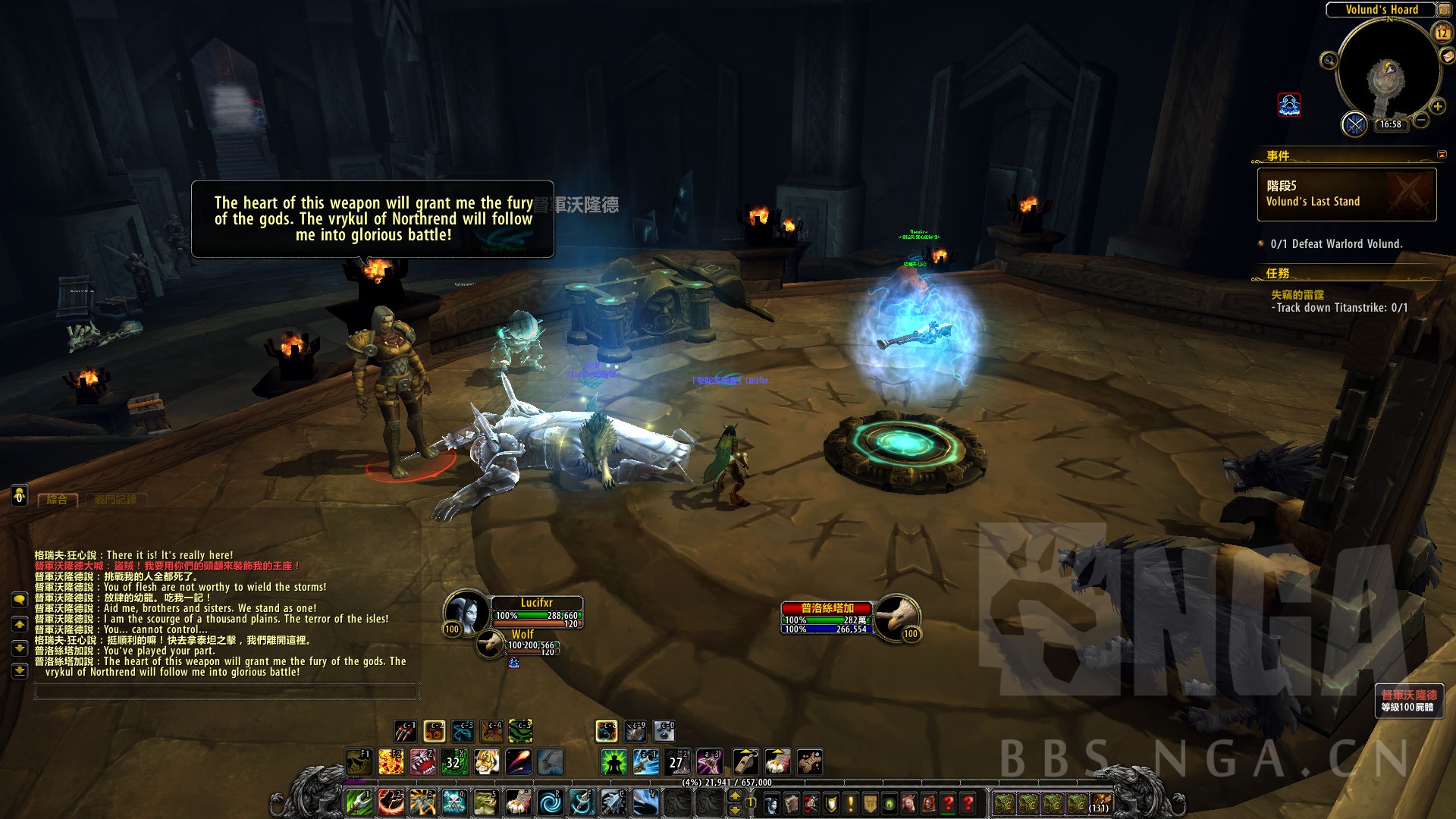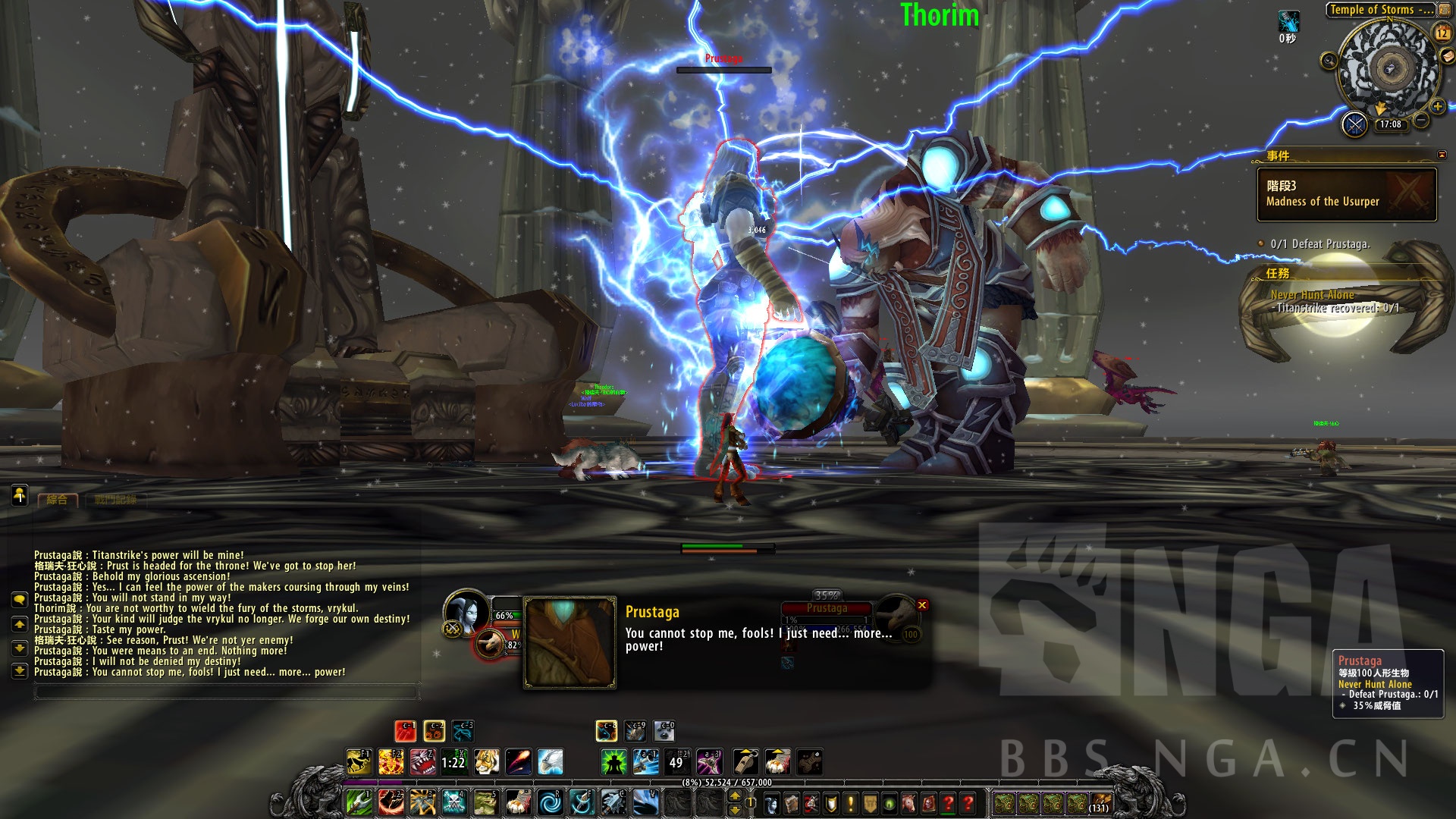 然而普洛斯塔加也很聪明,声东击西。把玩家和索林姆的注意力引开后,顺利抽出雷霆的力量
