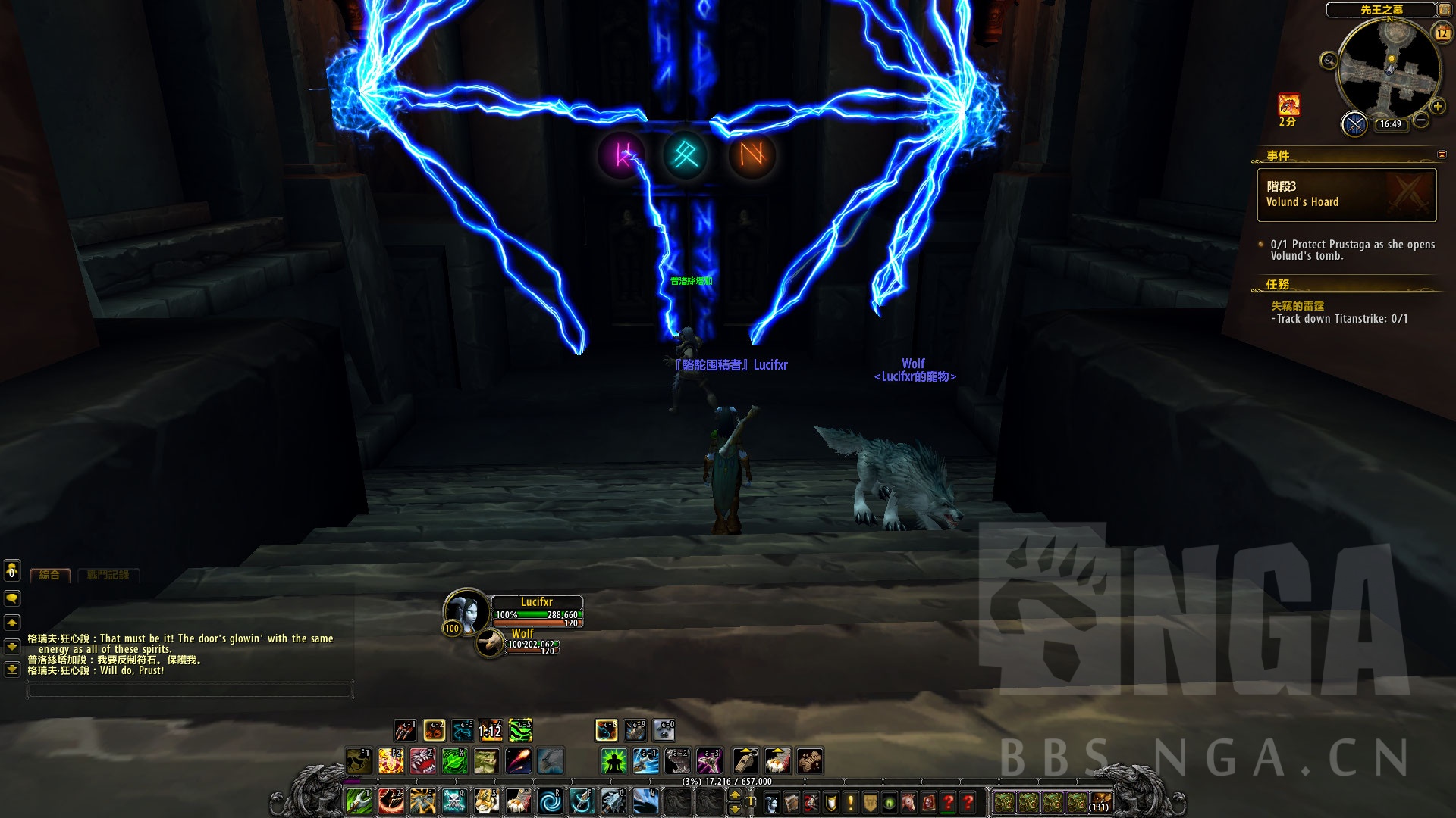 大门被几道符文所封印,玩家要在普洛斯塔加解除封印的时候保护她