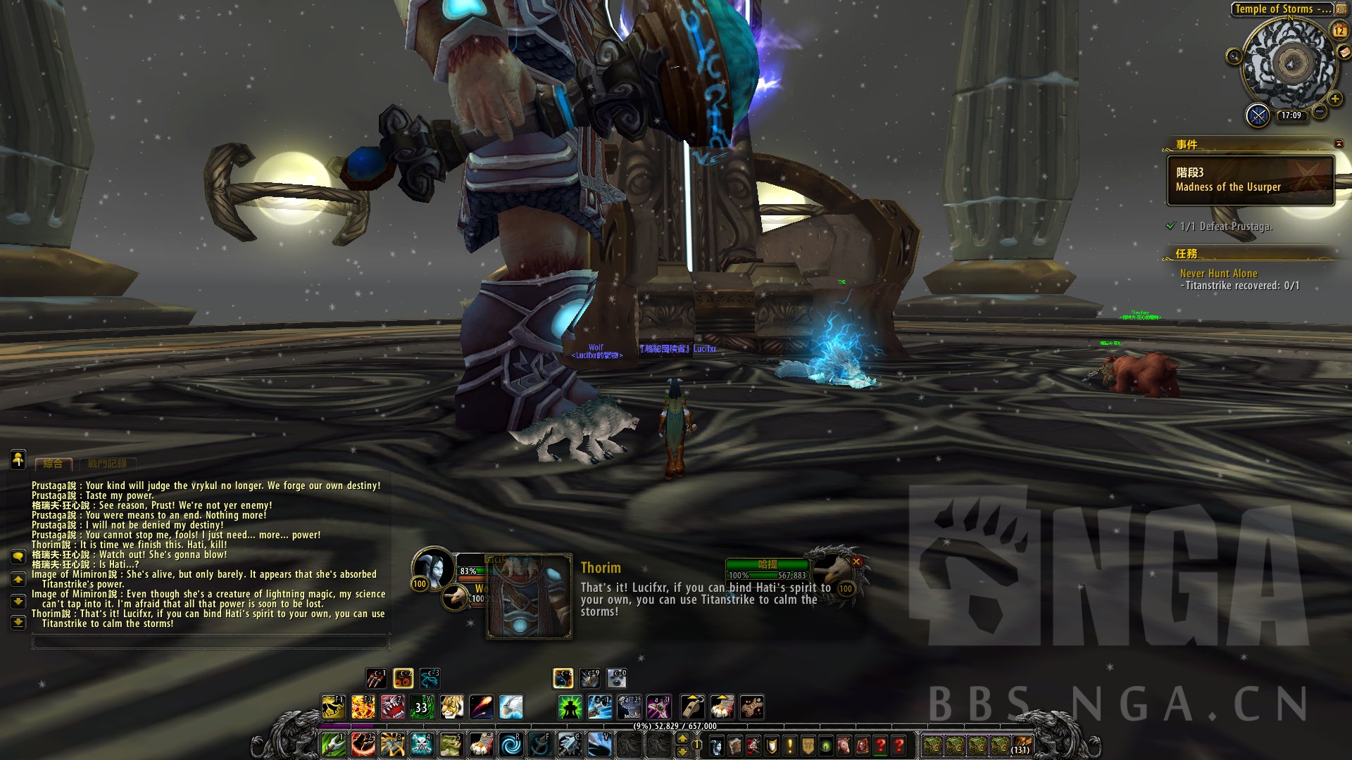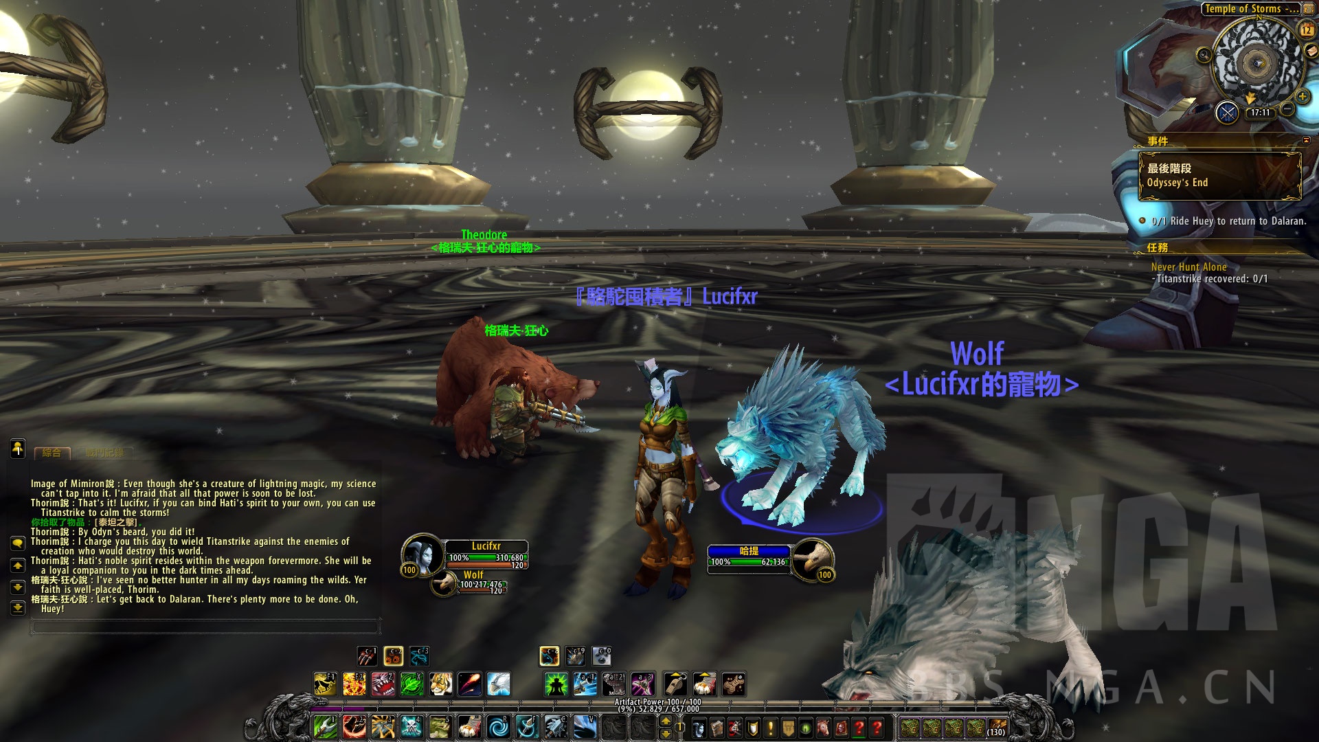 但是,索林姆的宠物,风暴之狼 哈提救了大家,她承受了所有的雷霆之力,但是作为代价,她正在死去