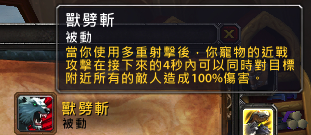 点评:AOE的核心输出技能,和之前版本一样,多重射击会触发野兽顺劈斩。
