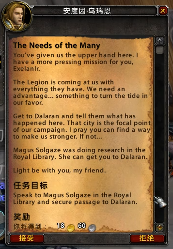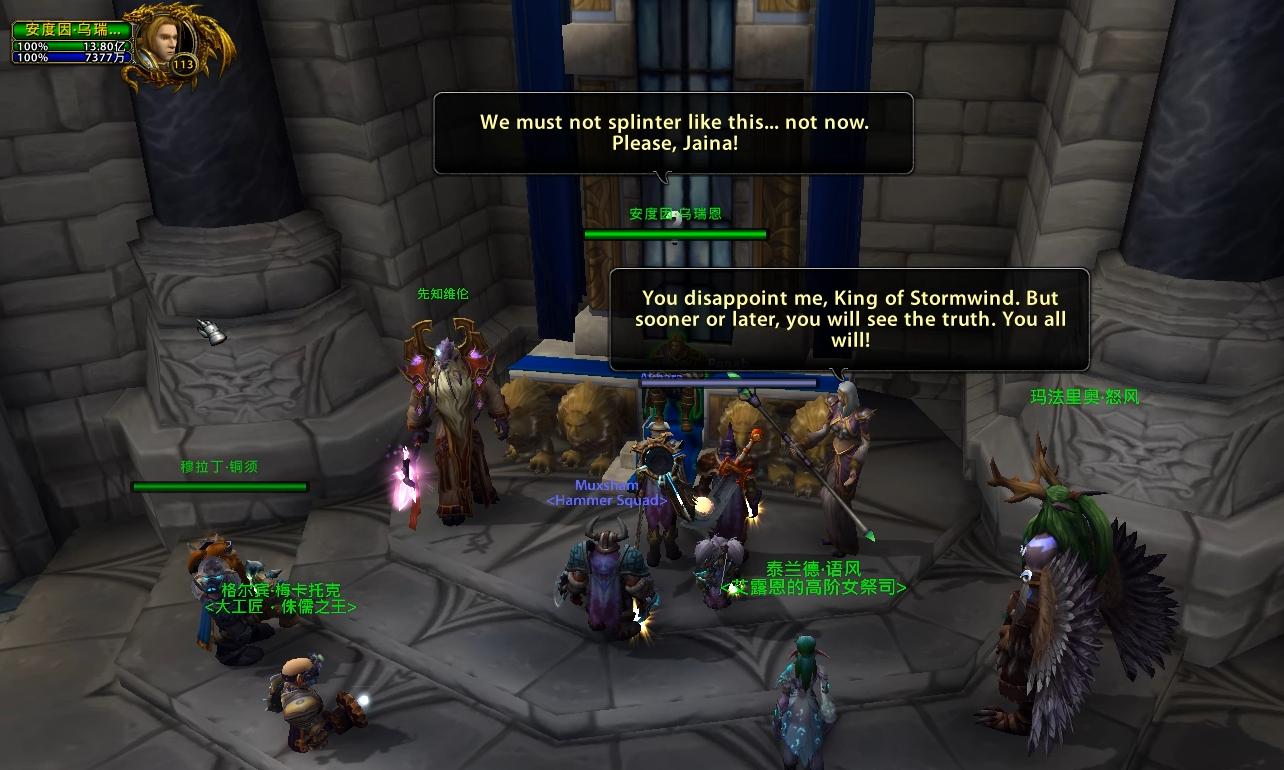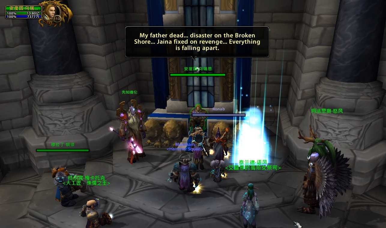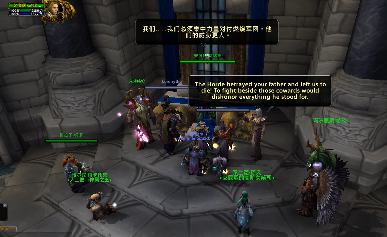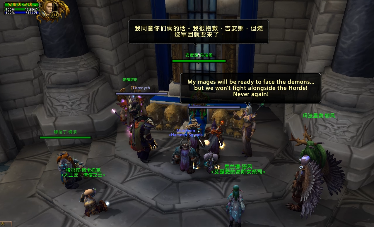 魔兽7.0剧情前瞻之暴风城瓦里安葬礼 2016-04-14 10:33 新浪游戏 643 瓦里安确认死亡,在破碎海岸的萨格拉斯之墓前直面古尔丹时,古尔丹召唤了大量恶魔,联盟溃败,瓦王牺牲~ 参加瓦王葬礼的任务 瓦王给安杜因最后的信 在破碎海岸,跟随吉安娜和格瑞迈恩找到瓦里安 找到弗丁,但是为时已晚,弗丁被杀 在萨格拉斯之墓直面古尔丹 古尔丹召唤的大量恶魔大军吞噬了联盟 破碎海岸一役,联盟损失惨重,幸存者们和格雷迈恩一起回到了暴风城 葬礼上,吉安娜坚决反对和部落合力对抗燃烧军团,愤而离开了联盟 吉安娜:部落背叛了你的父亲,让我们白白去送死!和这样的人并肩作战会让你的父亲感到耻辱。 吉安娜:我的法师会对抗燃烧军团,但是不会和部落一起,永远不会! 吉安娜:你让我很失望,安杜因国王,但是迟早你们会看到真相的,你们所有人! 安杜因:我的父亲牺牲了,破碎海岸是个灾难,而吉安娜却还在想着复仇的事。 随后杰斯织暗告诉玩家军团的密探已经进入了暴风城 恶魔入侵了暴风城 在关闭了暴风要塞两座恶魔传送门之后,安杜因请求玩家去达拉然寻求帮助 在皇家图书馆找到法师索尔加斯,开启达拉然传送门寻求肯瑞托的帮助 (作者:Exelan 来自:NGA) 余下全文(1/3)
