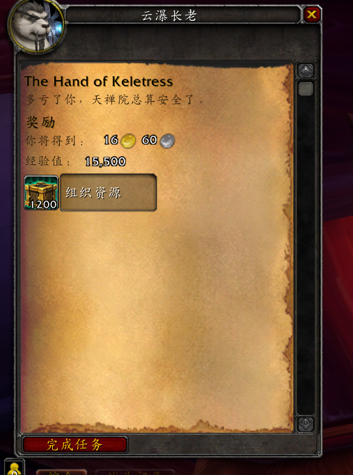 “然而燃烧军团正在用一种邪能散播器来腐化我们脚下的每一寸土地。快去摧毁它们,祝踏岚大师在山下等着你呢”。