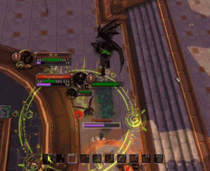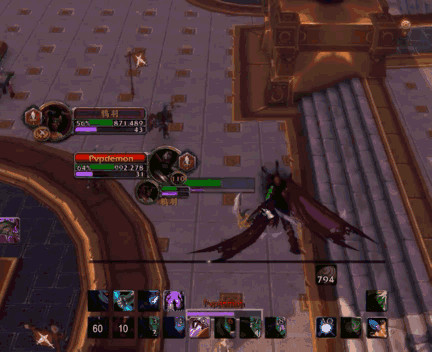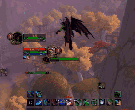 它分两个阶段,一个是上跳,一个下坠。在上跳期间获得一个从天而降的BUFF,可以使用技能,也可以跳动,但是会打断这个技能后续的部分,在下坠期间动作条切换,获得一个缓落BUFF,然后可以释放邪能之枪。