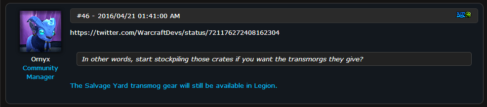 暴雪也承诺了在7.0幻化系统上线后,会按照追溯任务进度来点亮所有游戏角色已完成的任务奖励的任务装备。