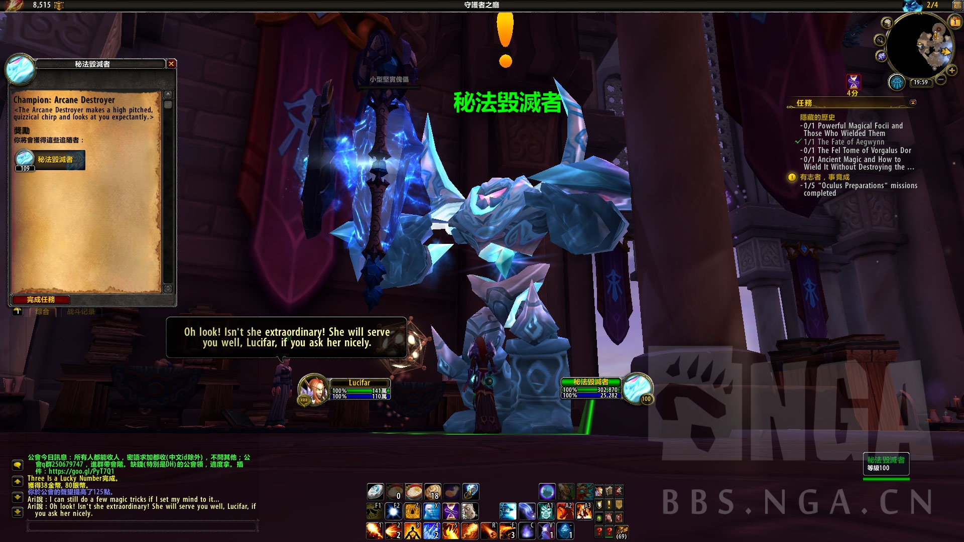 而之前协助我和卡德加帮助梅里的法师,艾利,卡德加告诉我她曾经是提瑞斯法议会的一员,而且曾经是艾泽拉斯最强大的法师之一。可惜的是她的精神被伤害,无法离开守护者大厅。