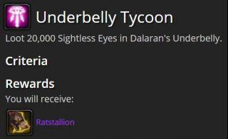 如果获得了2W个Sightless Eye,可以获得成就下水道巨头(Underbelly Tycoon),同时获得一只老鼠坐骑。
