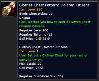 胸甲图纸: Dalaran Citizens—制作一件达拉然公民的胸甲,需要裁缝专业。