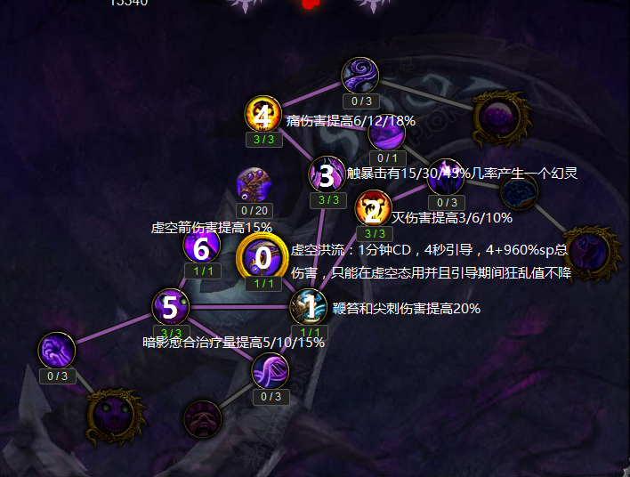 虚空爆发:进虚空态的技能,读条2秒,对所有身上有你dot的目标产生1+150%sp(2.50sp)的伤害。这个技能随后在虚空态内被转化成上面的虚空箭。
