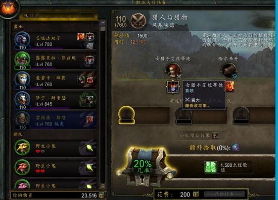 *职业大厅的任务体系和德拉诺之王版本的要塞任务体系类似,需要追随者的技能对应上任务所需求的技能才会大幅度提高成功率,超过100%的额外成功率有可能会奖励额外的物品。