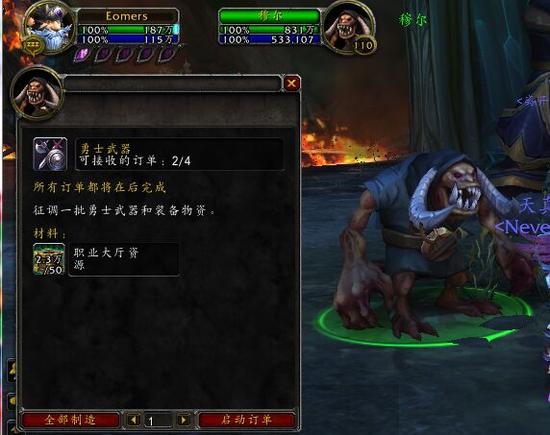 右-暗影契约:你可以下达工作订单,用职业大厅资源换取勇士的武器或装备。