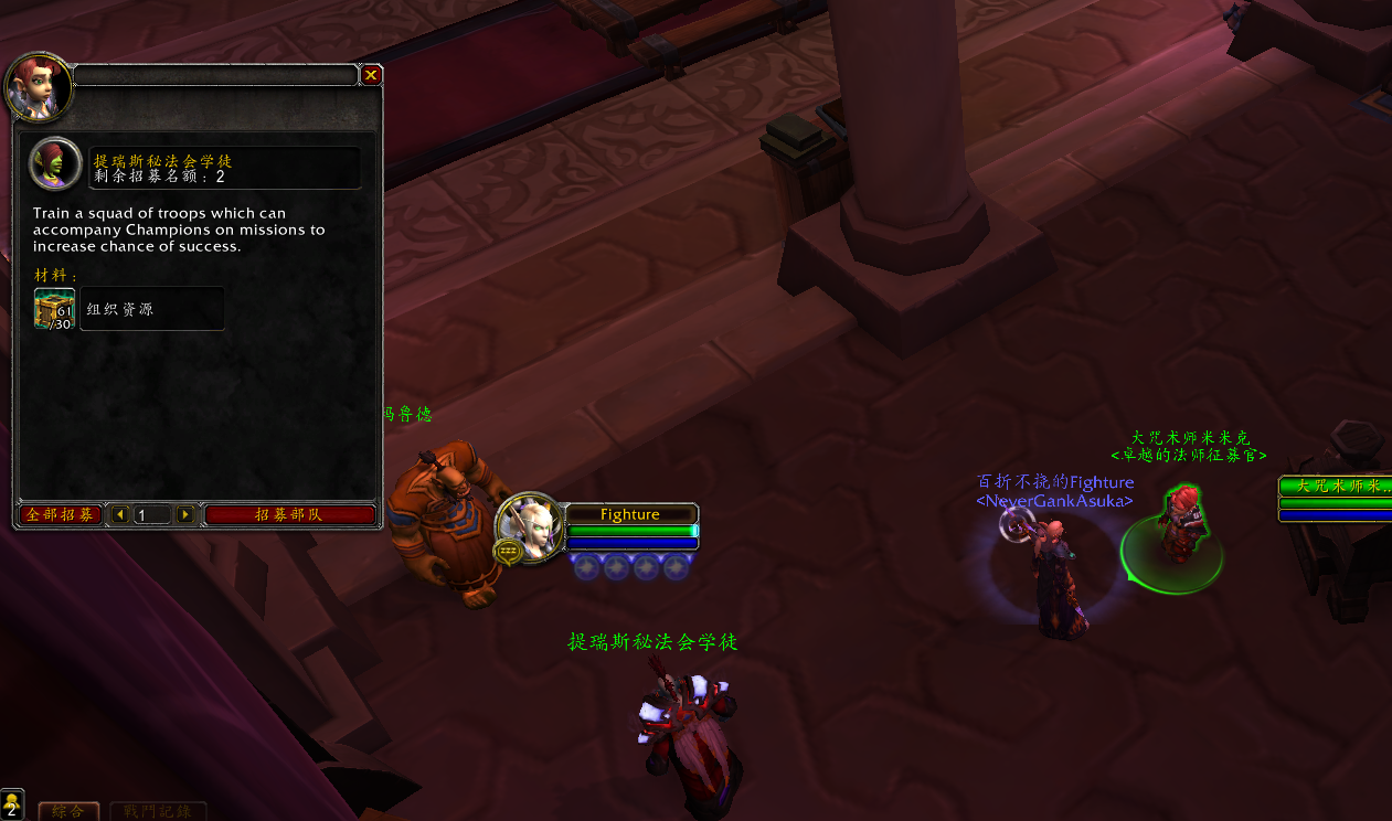 7.0加入职业大厅系统,本文将会从各个角度慢慢介绍关于我们法师自己的职业大厅,从图片预览,分区功能,招募者列表,大厅任务等等方面介绍,天坑缓补。