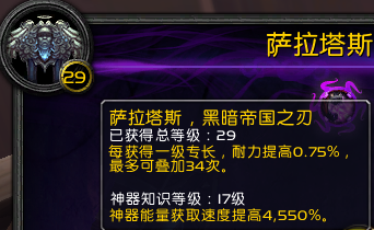下图为我测试服的神器 知识等级17代表升级过17次 最终加成高达4550% 这是非常重要的一个研究 神器的速度变相决定了点出特质的快慢 所以满级后要始终保持在研究状态。