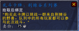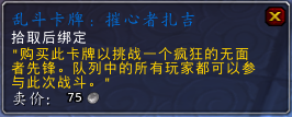 烂赌鬼的合同,100搏击者金币。“交给比兹莫搏击俱乐部的高奇·金链,购买一次竞猜机会,持续30分钟。”你可以猜测谁会赢得接下来的战斗,猜对了会奖励成就“唯利是图”。连续十次猜对获得唯利是图会奖励成就“受过训练的猜测者”。