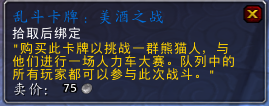 拳手的药水分发机,500搏击者金币。“交给比兹莫搏击俱乐部的奎肯布什,购买一桶药水,并在接下来30分钟内为所有人免费发放药水。”