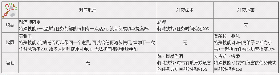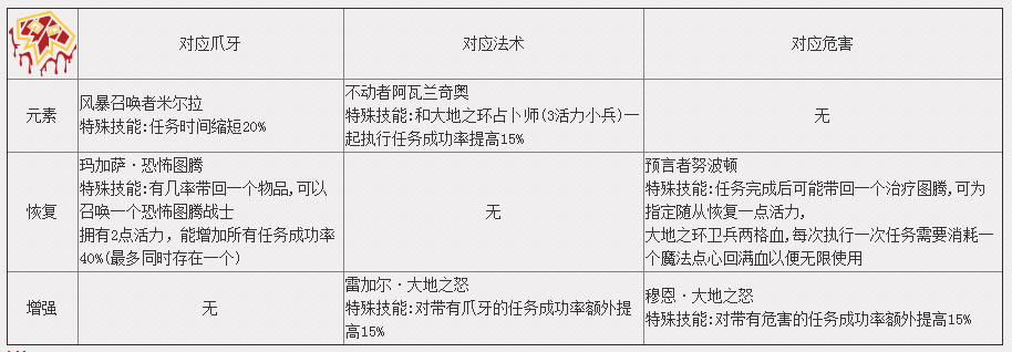 根据我的观察,挑战任务大多数情况都是3个任务要求一个专精对应,小弟多半是爪牙为主(经常6个小弟全是爪牙),其他较少。