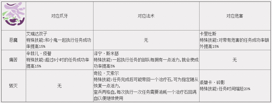 一般情况必选每种专精两人,每种应对(爪牙/危害/法术)两人,最佳第七人必选肉弹!莫罗斯比起肉弹较差,而且太难获得,不建议为莫罗斯太纠结。