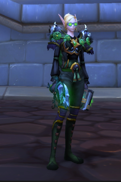 昨天一咬牙一跺脚把前年转成可爱的小母牛的血精灵牧师又转回来了,因为小母牛幻化好难配而且穿什么看着都很热。