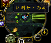 (6)第二次转阶段为黑夜阶段,开启侦测人型生物 可以在小地图发现伊利丹如图