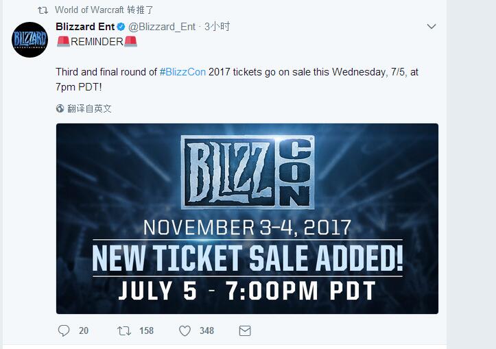 暴雪嘉年华的第三批门票开售了!此次嘉年华门票将于美国时间7月5日晚7点(北京时间7月6日早6点)开始发售。