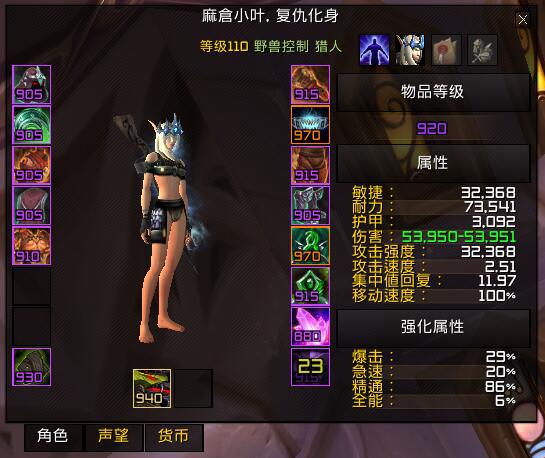 天赋 2 11111 2 (兽行践踏1+1),当前兽王绿字几乎全面碾压敏捷,so 水晶常驻,采用simc版本为725-02-7月7日64位版,勾选嗜血。