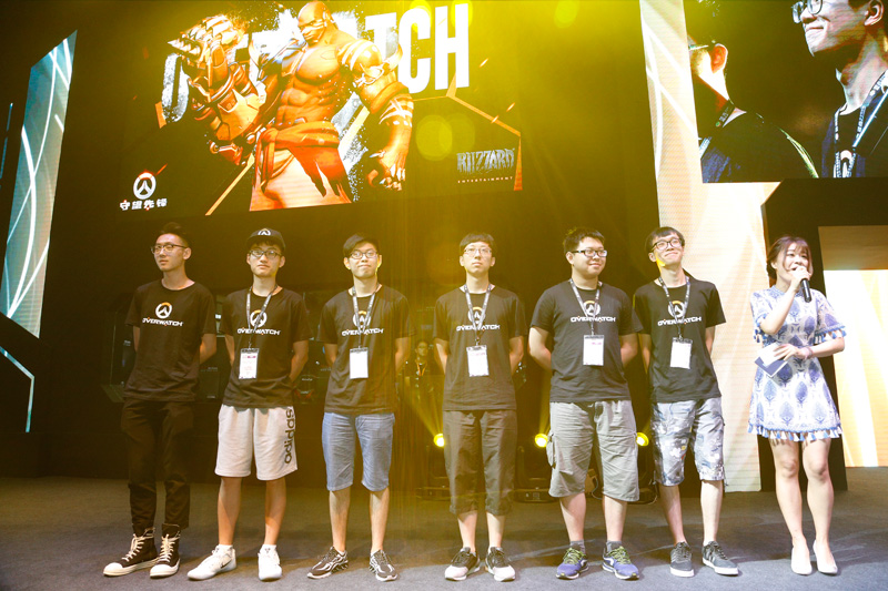 《守望先锋》活动环节,高校星联赛高校联队和现场玩家进行了6V6的对决,高校联队使用的六半藏阵容在没有准心的前提下,赢得了比赛的胜利堪称精彩。在此之前,到场玩家登台组队进行了《守望先锋》英雄的舞蹈模仿对决,“舞王”No总也借此机会一展风采。