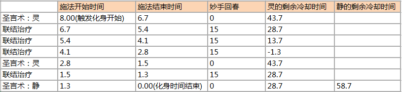 治疗模式:治疗祷言+灵的8秒循环(假设此前圣言术已冷却完成)