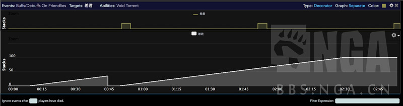 我在WCL上随意截取一个输出漂亮的暗牧,虚空形态曲线应该如图所示: