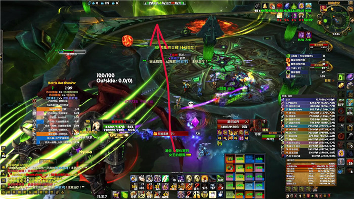 奇点处理方面,奇点1和奇点4没有坦克DEBUFF群啦,因此没有位移技能的惩戒骑此时必须和治疗组一起跑奇点。