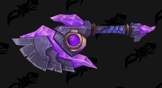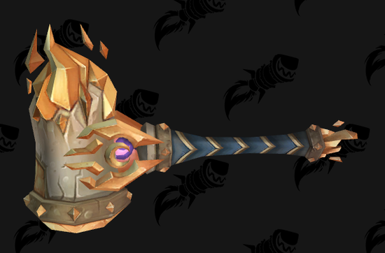 阿古斯幻化武器应该有一些幸运儿打出来了,这套东西似乎是旧的WOD的遗产,广泛在WOD的各个德莱尼NPC手里持有(比如这里面的单手斧就是阿卡玛的专属手镰,单手锤中的一个在骑士小弟德莱尼守备官手里),但是玩家一直没有机会获得。