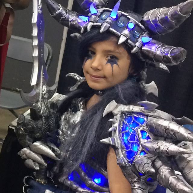 Reddit魔兽区的一位Coser妈妈晒出了她8岁女儿的巫妖王COS,这是前几天加拿大埃德蒙顿动漫娱乐展上她女儿的表演。