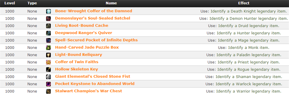 鉴定传奇:鉴定出一件牧师职业的传说物品。取决于你的拾取专精。