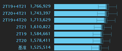 可以看到最优秀的组合是2T19+4T21,但T19的基础装等太低,正常情况下比较好的选择而是2T20+4T21。