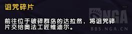 在大秘境低保箱子,或者燃烧王座BOSS,或者大使箱子等可以获得新的任务物品“诅咒碎片”,这个物品会给你个任务让你去找达拉然的奥法工匠。