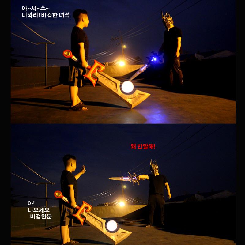 魔兽玩家自制实体版灰烬使者 2017-10-12 16:57 新浪游戏 18 韩服一魔兽玩家手工制作了一把实体的灰烬使者,而且还能发光。同时他还有一把发光的霜之哀伤,于是最后父子两人各自拔剑相对,十分中二~