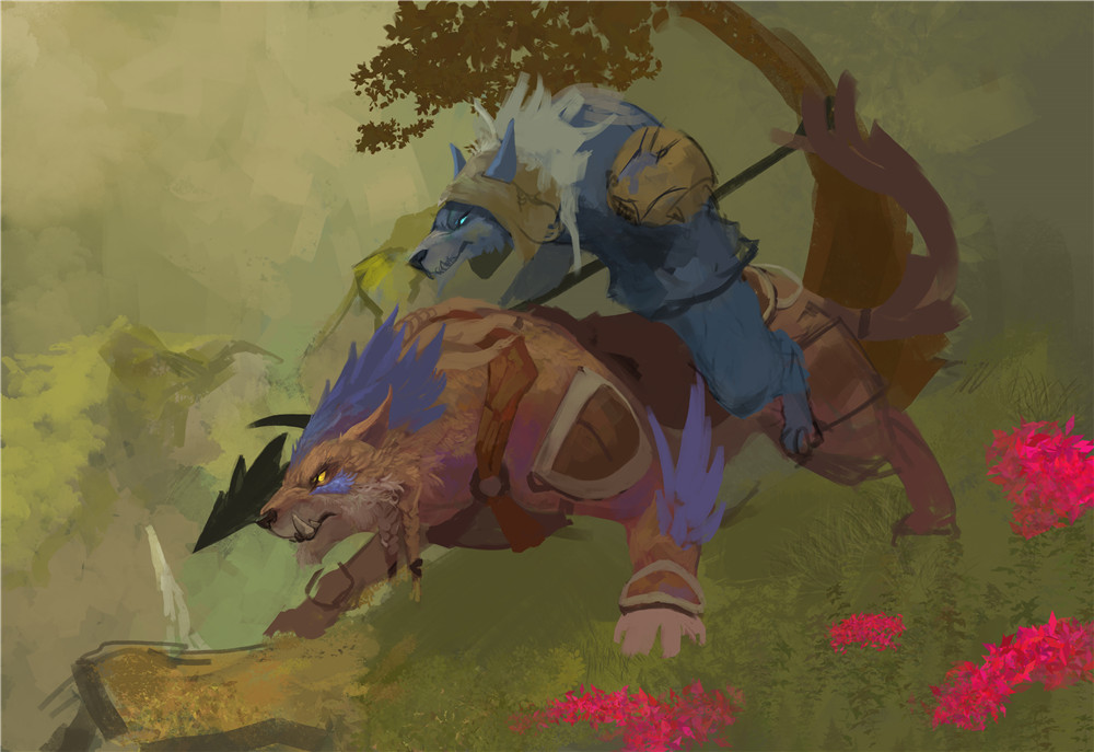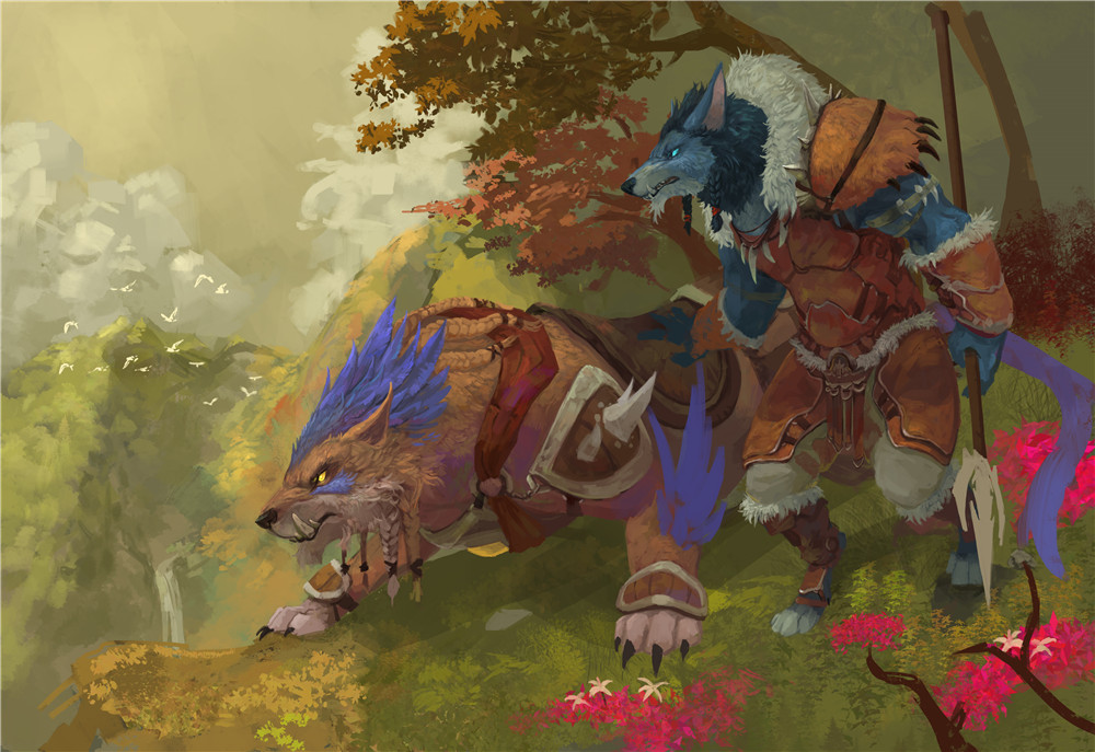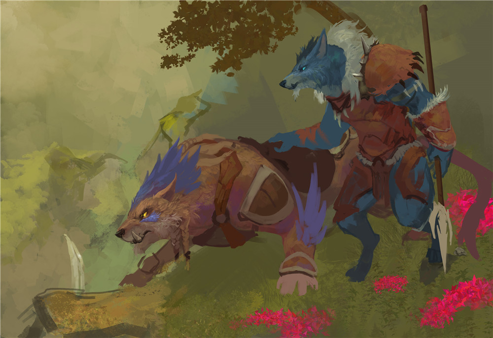 国外画师绘制的狼人猎人,色彩极为丰富亮丽。