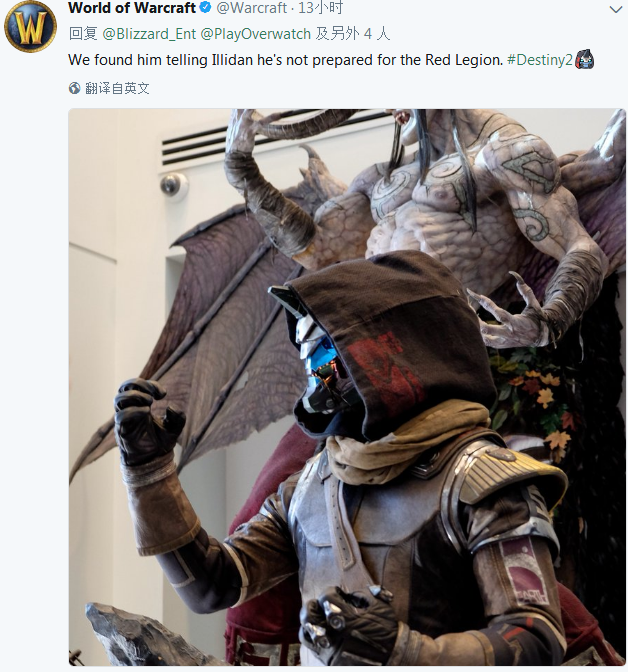 祝命运2正式登陆暴雪外服战网 2017-10-26 16:08 新浪游戏 21 10月25日,《命运2》PC版正式登陆外服的暴雪战网。动视Bungie工作室和暴雪旗下游戏官推相继发布了一系列“命运2角色凯德造访暴雪总部”的照片,庆祝这一战网新成员的加入。