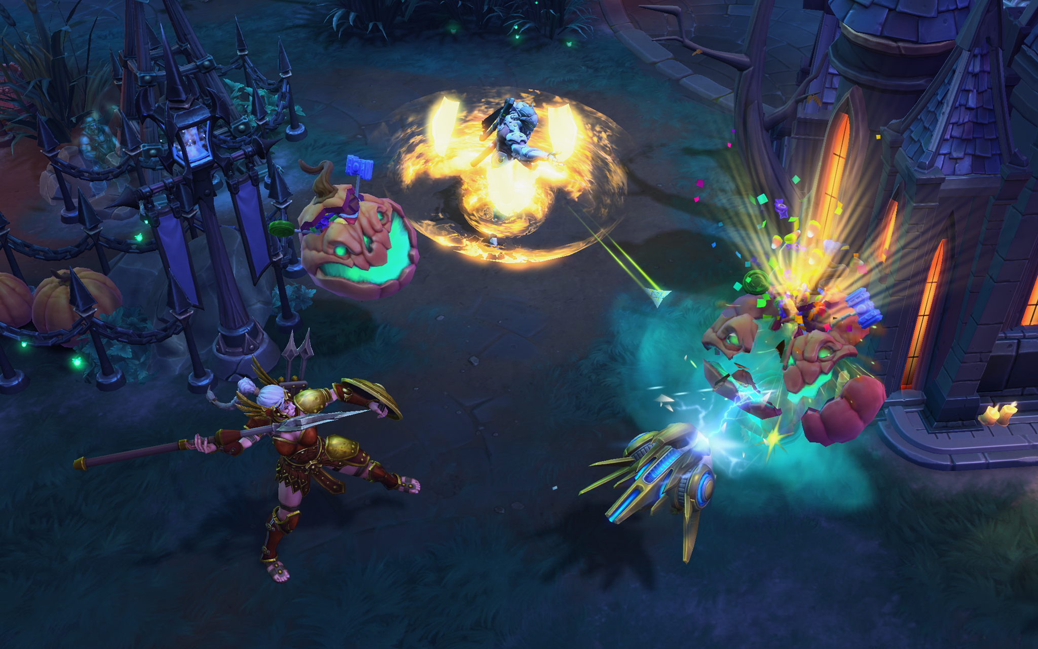 双方队伍都可以砸碎这些南瓜,砸碎后会向敌方核心发射一枚南瓜,并为你和你的队伍释放一个Trick or Treat的效果。